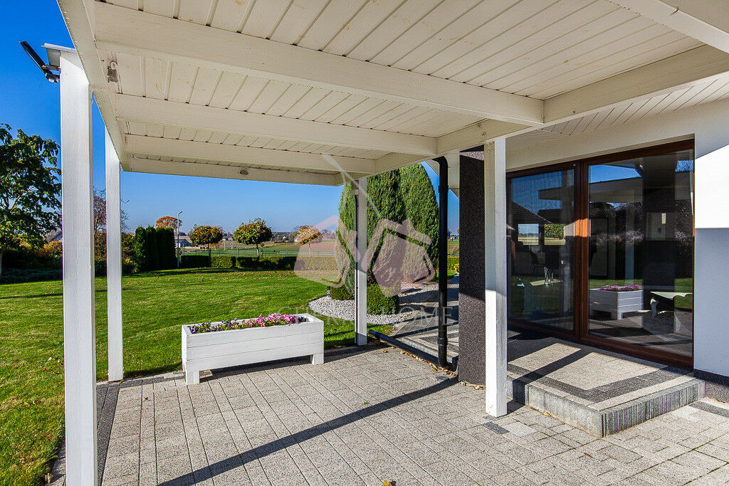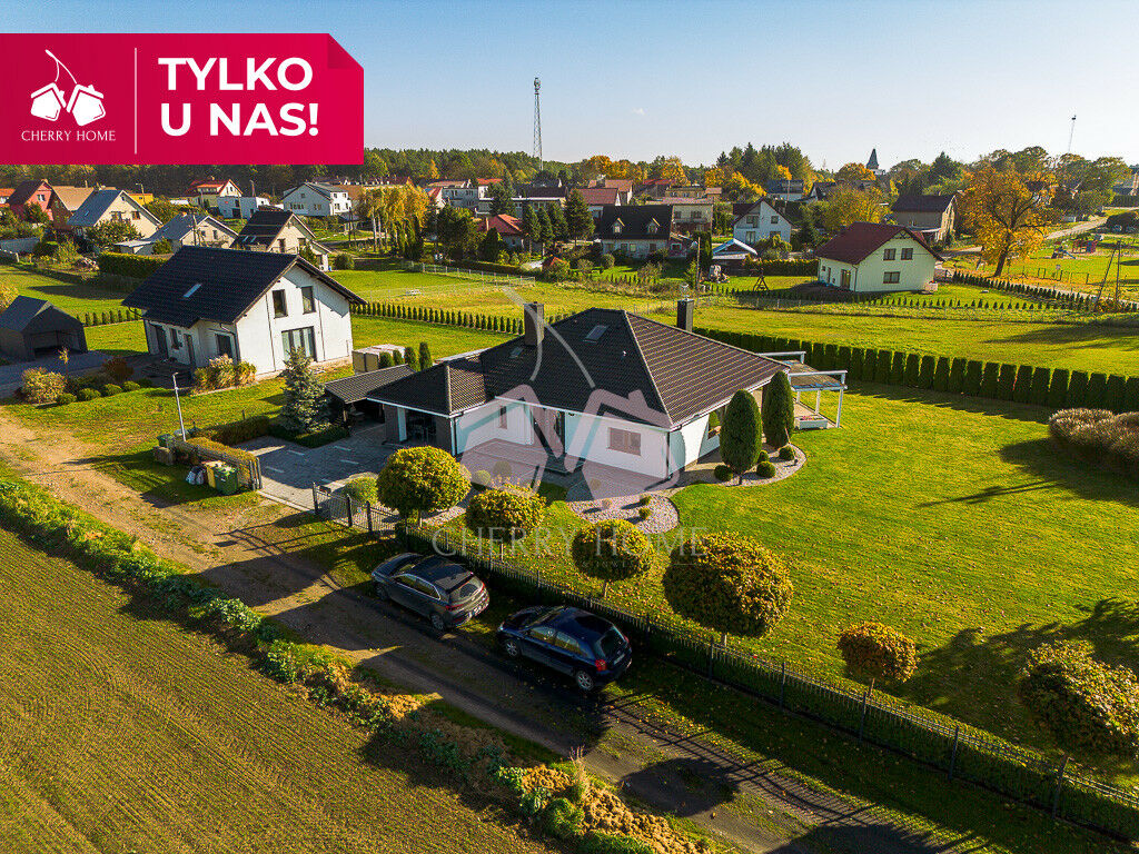 Przestronny salon z wyjściem na taras, aneks kuchenny ze spiżarnią, trzy sypialnie, łazienka z wanną, osobna toaleta, garderoba, kotłownia, garaż. Na posesji znajduje się również solidna szopa - idealna na narzędzia, drewno, rowery czy motocykl.